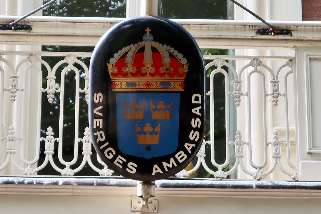 Sverige har ambassader för att representera Sverige utomlands. Bilden är tagen på Sveriges ambassad i Nederländerna. Foto: Shutterstock