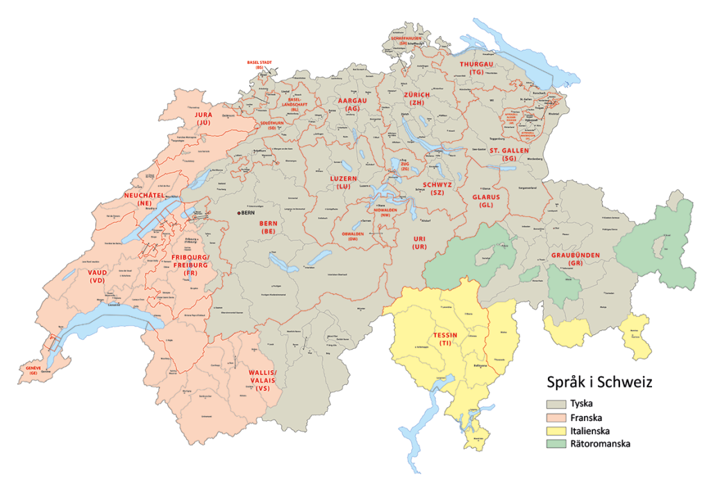 Men Schweiz har fyra officiella språk.