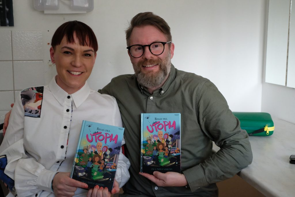 Erik och Mikaela har skrivit boken Resan till Utopia tillsammans. Boken handlar om en klassresa som inte blev som den var tänkt. Idén till boken fick de från sitt eget liv.