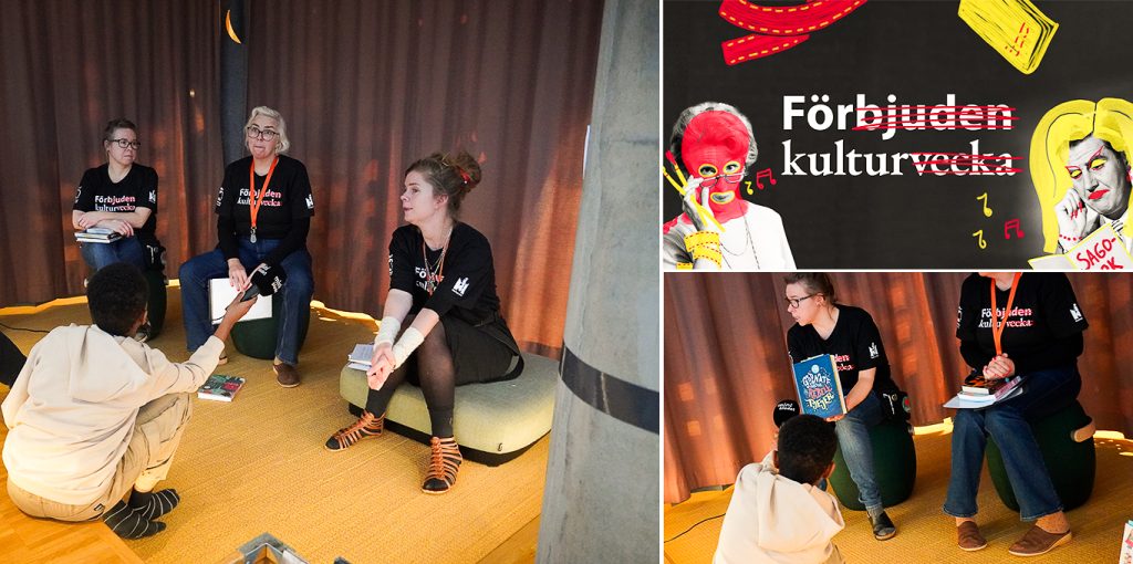 Personalen på Rosengårdsbiblioteket berättade om tre böcker som blivit förbjudna eller censurerade. Foto: Elliot/Malmö stad.