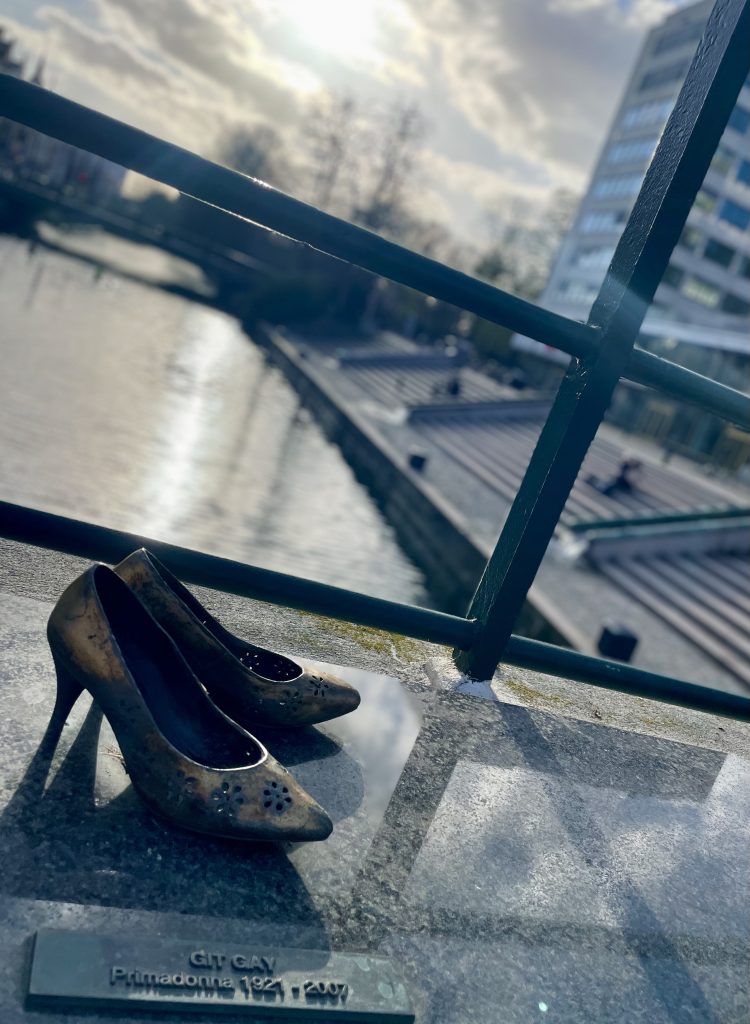 Motivering: Ett unikt perspektiv av konstverket Way to go på Davidshallsbron i Malmö. Solen lyser mjukt upp ett par klackskor framför Malmös kanal. Fotografen har också fått med att det är revyartisten Git Gays skor vi ser.