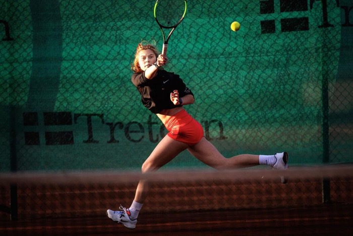 Emilia Hollman från Karlstad Tennisklubb prisas av Svenska tennisförbundet. 16-åringen vann årets Fair Play-pris för region väst.
